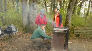 Wir fanden inzwischen bei frischem, fast stürmischem Wind eine geschützte Feuerstelle, so dass wir wie gewohnt unsere Würste und Brote braten konnten.