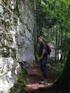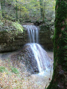 so dass alle Würste richtig schön gebraten werden konnten. Danach zogen wir weiter an schottischen Hochlandrindern vorbei, an den Scheunen, die an Jeremias Gotthelf’s Beschreibungen erinnerten, und dem Schloss ins Tal des Fluebachs. Hier führt der Weg entlang einer Felswand und endet plötzlich in einem Kessel beim Sormattfall. Weiter geht es hinter oder vor dem Wasserfall vorbei rasch bergab durch dem Buchenmischwald. und wieder über eine Anhöhe nach Bubendorf. In der Kirche fanden wir Gelegenheit zur dankbaren Erinnerung an den Tag und zum gegenseitigen Segnen. Die Zeit war wie im Fluge vergangen. Wir verabschiedeten uns bis zu unserem nächsten Treffen am 22. November.