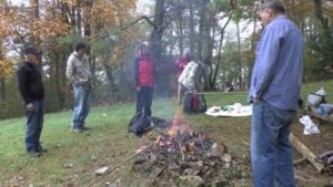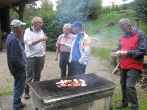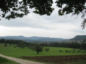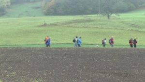am 29.10. haben sich doch 9 Männer für die Wanderung rund um Wintersingen versammelt, dies obwohl auf 600-900müM Nebel angesagt war. In Wintersingen war es dann wirklich so: unser Mittagsrastplatz schien im Nebel zu liegen. Dennoch zogen wir los. Zuerst ging es kurz durch das schmucke Bauerndorf und schon hoch zum ersten Rebberg. Wir hatten im Dorf den Besitzer getroffen und von ihm die Erlaubnis erhalten, eine kleine Nachlese zu halten, wovon wir sogleich Gebrauch machten. Am Waldrand neben den Reben war der erste Gedankenanstoss: Im Rahmen unseres Jahresthemas ‚Eine Vision für unsere Leben finden‘ war heute der Aspekt ‚Weitergeben‘ dran. Es ist wie im Berufsleben: Lehre – Geselle und Arbeiter – Meister. Weitergeben umfasst viel mehr als Weitersagen, es wird geprägt von unserer Motivation, unserer Haltung, unserem Handeln und Sein. Dadurch hat seine Aussage mehr Kraft als unsere Worte allein. Wir haben dann auch verschiedene Beispiele angeschaut von bedeutenden Männern, von denen uns v.a. die Taten überliefert sind und weniger die Worte (Jesus, Franziskus), von Männern, die nicht so Wortgewandt waren (Moses) oder die das Vertrauen der Mitmenschen durchs Teilen ihres Alltags erwarben (Paulus auf den Missionsreisen als Zeltmacher) oder deren Taten besser in Erinnerung blieben als die Worte (Mahatma Ghandi). Mit diesen Gedanken und ernsthaften Gesprächen unter Männern ging es wieder leicht bergab in den Wald entlang der Holden. Die Blätter der Bäume begannen sich schon intensiv ins Gelb zu verfärben. Und der Dachs (Es war wirklich ein Dachs am Werk; seine Fussspuren waren in der Erde deutlich sichtbar.) hatte einen Eingang zu seiner Höhle, der gut sichtbar auf den Weg führte, wieder zu gegraben. Nun ging es wieder hoch entlang eines kleinen Bächleins, durch eine kleine Schlucht wieder auf die Ebene oberhalb des Rebbergs. Hier neben einer durch Pfaffenhüetli wunderbar rot leuchtenden Hecke war der Zeitpunkt für den zweiten Gedankenanstoss gekommen: Pierre erzählte aus seinem Leben von Menschen, die ihn als Kind schon prägten. Dies geschah durch ihr Handeln und die Haltung, die dahinter steckte. Die Worte waren schon längst vergessen gegangen. Nun war es nicht mehr weit bis zum Mittagsrastplatz. Und wirklich, der Nebel war höher hinauf gezogen (Leider sahen wir dadurch den oberen Teil der geologischen Tafel unseres Juras nicht mehr.). Bald flackerte ein Feuer und schon waren die Würste aufgesteckt und am Braten. Die Zeit nutzten wir wieder für intensive Ge