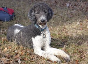 Bratsachen. Der gedeckte Tisch sah richtig fein aus und das Essen war abwechslungsreich und schmeckte allen. Als Tisch diente uns der ehemalige Sodbrunnen. So hatten wir Gelegenheit Neuigkeiten auszutauschen und uns besser kennen zu lernen. Nach dem Essen ging es weiter zur Thürner Fluh. Zeus, der 2jährige angehende Blindenhund, genoss es frei springen zu können und glich manchmal einem springenden Reh. Auf der Fluh war uns leider keine Weitsicht in die Alpen vergönnt. Der Weg hinunter nach Sissach bot wieder viel Gelegenheit für Gespräche miteinander, was wir auch ausgiebig nutzen.