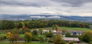 Kurz vor Inzlingen verabschiedeten wir uns von der Landesgrenze, um dem Aubach zum Naturschutzgebiet mit den Teichen zu folgen. Hier war ein kleiner Unterstand, der gerade günstig für unser Mittagsessen war. Wir machten eine kleine Teilete und genossen den Ausblick ins Schilf. Einmal war sogar ein Eisvogel kurz zu erkennen. Nun setzte der lange prognostizierte Nieselregen ein, allerdings nur fein. Wir folgten weiter dem Aubach bis nach Riehen, wo wir das Mutterhaus der Riehener Diakonissen aufsuchten. Hier in der Kapelle hatten wir unsere Besinnung auf unser Zusammensein mit Gebet füreinander. Doch dann ging es schnell zum Bahnhof und bald folgten die ersten Verabschiedungen.