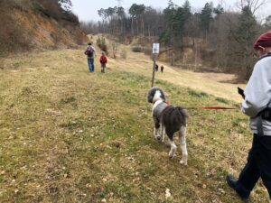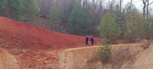 Wir trafen uns in Lausen, neun Männer, ein Knabe und ein Hund. Wir starteten gleich hinauf zum Wald am Landschachen. Unterwegs war eine Einführung ins Jahresthema ‚Wert und Würde‘. Ursprünglich lebten die Menschen in der Grossfamilie oder dem Clan. Das einzelne Mitglied ging darin völlig auf. Erst in den Spätzeiten der Hochkulturen des Altertums und speziell im jüdischen Umfeld wurde das Individuum mit eigener Persönlichkeit und Verantwortung erkannt. So bildete sich Wert, Würde und Schuld heraus. Im Landschachen kamen wir an einem Waldstück mit in grossen Abständen stehenden hohen Föhren vorbei, so dass wir uns wie in den italienischen Pinienwäldern fühlten. Wenige hundert Meter weiter war eine völlig andere Welt: Die Farben dunkelrot, orange, dunkelgelb und ocker dominierten in den ehemaligen Tongruben des Tonwerks. Sie sind ein geologisches Wunderwerk, indem sich unterschiedliche Kalkschichten überwarfen und hier zutage traten. Wir wanderten durch die grosse Grube und stiegen die farbigen Flanken hoch zum Wald. Dort in der Nähe befindet sich ein Drei-Gemeinden-Grenzstein. Dies führte uns zum Begleitthema ‚Grenzen‘. Auch diese haben sich erst im Verlaufe der Menschheitsgeschichte herausgebildet, um Nutzungsrechte gegenüber benachbarten Orten festzulegen. Der weitere Weg zur Feuerstelle am Waldrand von Ramlinsburg bildete dann auch lange Zeit die Grenze zwischen Ramlinsburg und Bubendorf.