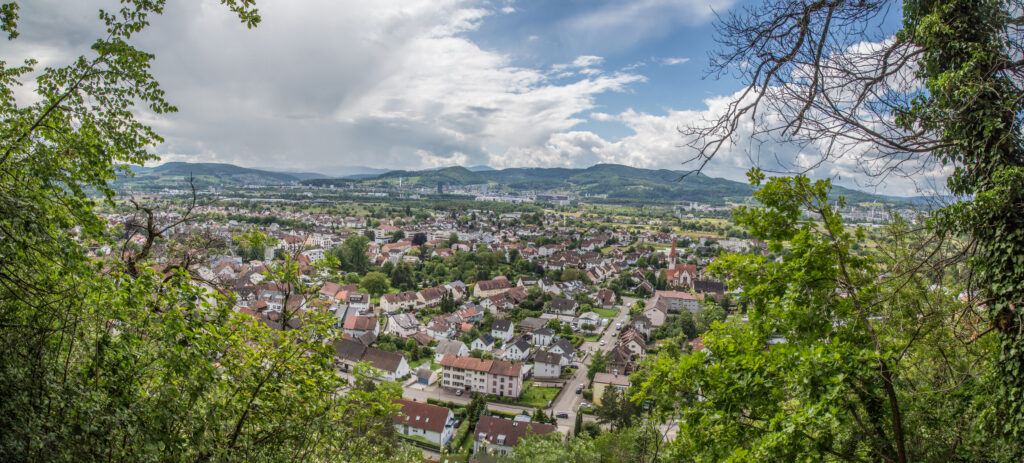 Nun, am 25. Mai haben wir uns wieder getroffen, zum zweiten Mal in diesem Jahr. Treffpunkt war der Bahnhof Riehen. Auf dem Weg zur Busstation erzählte uns Pierre, dass im Park, den wir passierten, einmal ein Heilbad hätte entstehen sollen. Dann kamen wir am Hofgut vorbei, das ursprünglich Johann Rudolf Wettstein gehört hatte. Diesem Politiker und auch Bürgermeister von Basel ist zu verdanken, dass die Eidgenossenschaft nach dem dreissigjährigen Krieg vom damaligen deutschen Reich selbständig wurde. Nach diesem Exkurs bestiegen wir den Elektrobus nach St. Chrischona. Hier begann unsere Wanderung. Die erste Station war der Fernsehturm. Dort erfuhren wir auf wen der Name der Chrischona zurückgeht, eine Einsiedlerin im 4. Jahrhundert, die mit Ottilie und Margaretha auf den Hügeln, die Basel umgeben, wohnten. Wenig später überquerten wir die Landesgrenze und wandten uns dem Ruschbachtal zu, das nach Wyhlen führt. Doch die kräftigen Regenfälle der vergangenen Wochen machte unseren Fussweg im Wald bald unpassierbar mit rutschigen Stellen und umgestürzten Bäumen über dem Weg. Also nochmals zurück. Zum Glück führt ein Mergelsträsschen am Rand des Tälchens ebenfalls nach Wyhlen. Hier wollten wir nicht durch die Ortschaft wandern, sondern stiegen wieder in vielen Windungen hoch, bis wir dem Rand eines Abhangs oberhalb von Wyhlen folgen konnten. Am Weg war auch eine Aussichtsplattform, das Chänzele, wo wir sogar Platz für unser gemeinsames Mittagessen fanden mit schönstem Ausblick auf das Dorf.